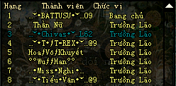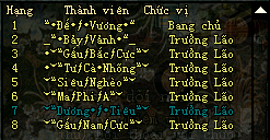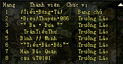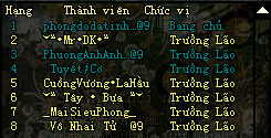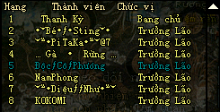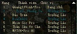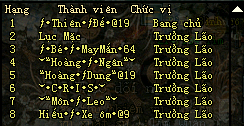 - Danh sách thành viên bang hội tham gia: Bao gồm Bang chủ và 7 trưởng lão