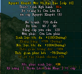 | Ví dụ: 1 Nón Tinh Sương + 4 Nguyệt Khuyết Tinh Thạch + 10 Đồ phổ Nguyệt Khuyết Nón + 5000 vạn có tỷ lệ 70% thành 1 Nón Nguyệt Khuyết.