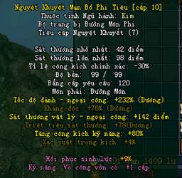 - Đồ Phổ Nguyệt Khuyết (khóa hoặc không khóa) đều có thể dùng làm nguyên liệu để chế tạo trang bị Nguyệt Khuyết. Trang bị sau khi chế tạo sẽ không bị Khóa.