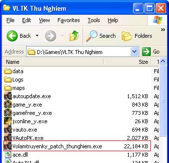 - Khi tải xong, đồng đạo lưu tập tin Volamtruyenky_patch_thunghiem.exe vào thư mục "VLTK Thu Nghiem".