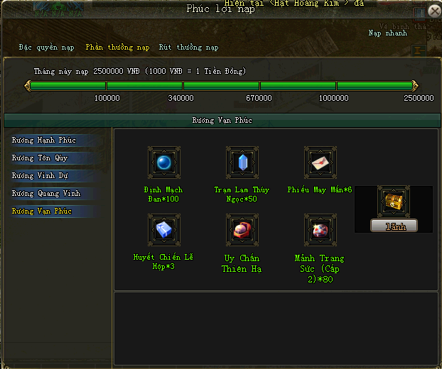 | 2,500,000 | Rương Vạn Phúc (HSD 14 ngày) |