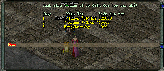 Khép lại hoạt động Đua Top Thiệp Năm Mới, chúc mừng nhân sĩ đã xuất sắc nhận được phần thưởng gồm phongdodatinh…@9 (Top 1 Server) và •Thiên•ƒĐế•@19 (Top 2 Server), đồng thời chúc mừng Top 3 mỗi Server của Võ Lâm Truyền Kỳ. Và ngay sau đây, Bổn Trang xin công bố kết quả Đua Top như sau. Chúc mừng quý nhân sĩ thỏa điều kiện nhận thưởng nhé.