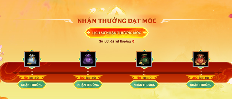 - Bước 4: Sau khi rút đủ số lần yêu cầu, có thể nhận mốc thưởng ở dưới, sau khi bấm nhận thưởng, vào game gặp NPC Đại Thần Tài để nhận