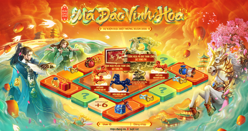 Hòa cùng niềm vui Tết Nguyên Đán 2026, Võ Lâm Truyền Kỳ xin gửi lời chúc tốt đẹp nhất đến tất cả quý nhân sĩ và gia quyến. Và qua đây thân mời quý nhân sĩ đến với sự kiện Mã Đáo Vinh Hoa cùng nhiều tặng phẩm đặc biệt giá trị của võ lâm. Hãy cùng tham gia và sở hữu những bảo vật đầu xuân nhé.